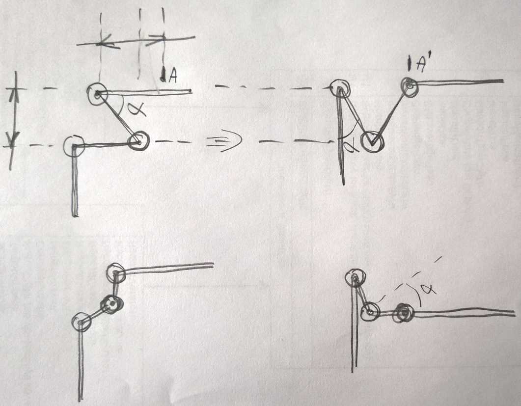 Na, dariau tokias alkūnes, kad nelimituotų šakės eigos (ji mažesnė nei pas tave man taip atrodo, nes viršutinė šakė labai trumpa). Tas man praktiškai nieko nekainuoja, tai kodėl ne..