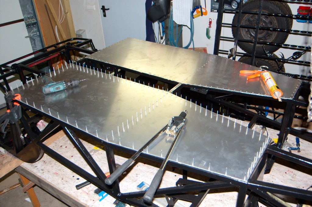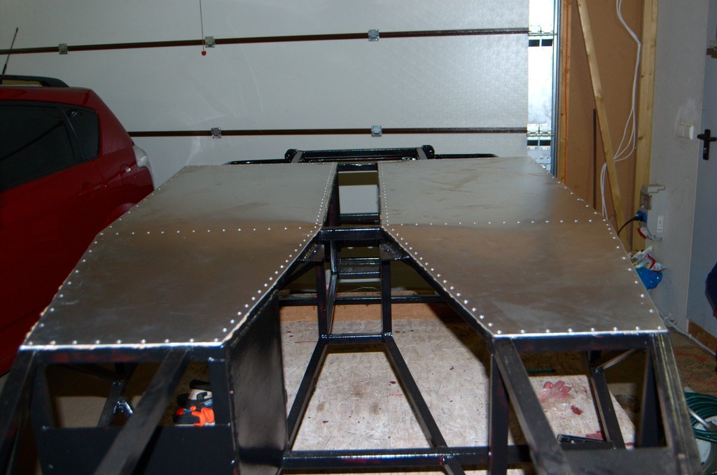 Tarp aliuminio lakšto ir rėmo pritepiau "Nail power" klijų, kad neleistų panelėms barškėt ir kad užsandarintų nuo vandens tiek kniedžių skyles, tiek tarpelį tarp rėmo ir grindų.