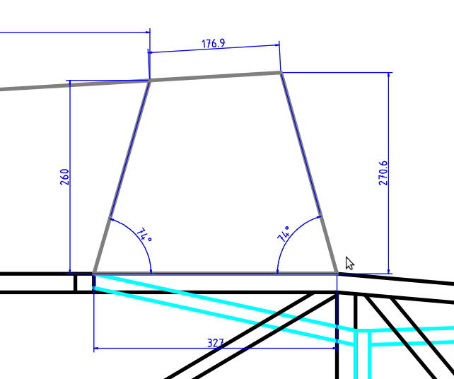 O aš žiūriu, kad ir kitas kampas turės būt kitoks, nes kapoto apatinis kampas bus pora cm toliau už bulkhead panelio apačią, nes ten reiks užleidimą padaryti. O viršuje scuttlės užleidimas palįs po kapotu.