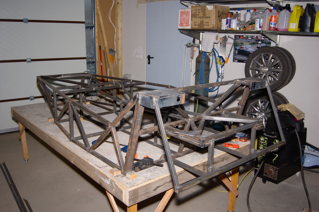 Judam po truputį. Nusipirkau 1000x1250x3 lakštą, iš jo bulgarkinu "chassis plates". Pasibaigė 20x20x1.5 vamzdis, nes į vamzdžų sąrašo galą reikia po du vienodus vamzdžius su tuo pačiu numeriu, taigi skaičiuodamas reikiamą ilgį išsidūriau. Reiks nusipirkt. Galvoju, kas čia man galinius vamzdžius sulenks. Praktiškai rėmui trūksta tik tų galinių lankų ir juos remiančių vamzdukų, vairo palaikymo tiltelio ir visokių plokščių.