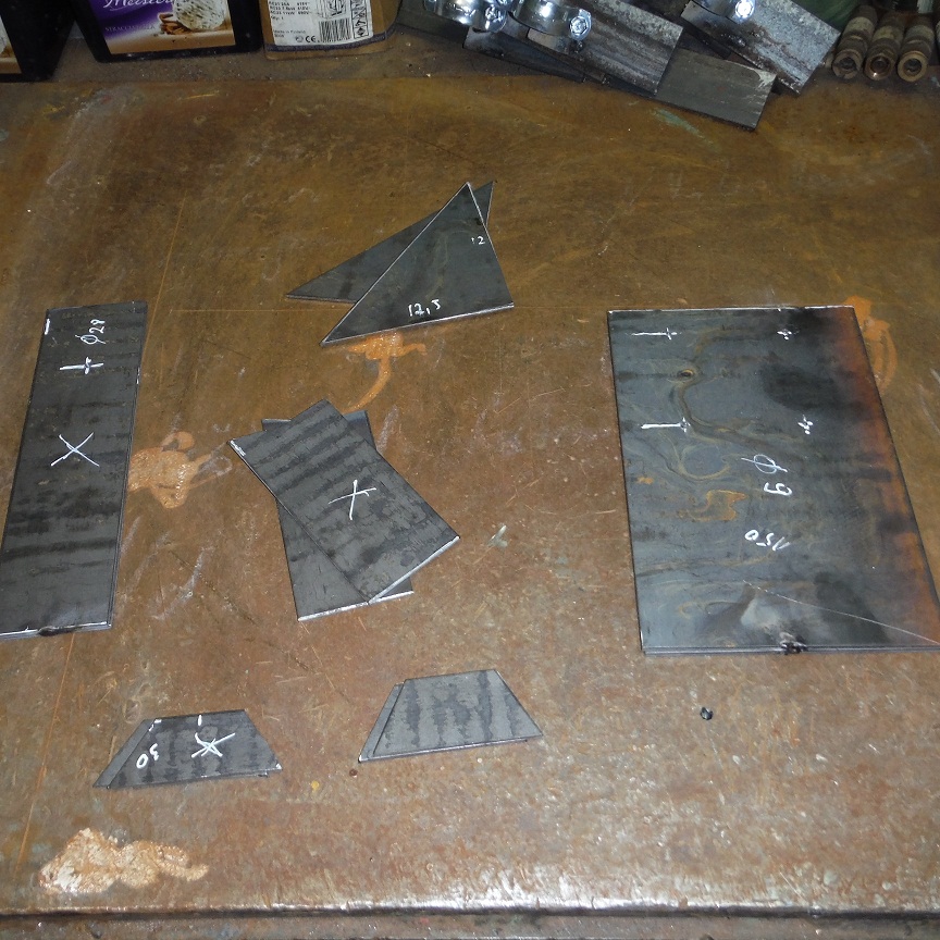 Vakaryksciai darbai. Vaziuokles bracketus dariausi is kvadratinio vamzdzio 50x50x3 sigreziau skyles ir supjausciau, o amortizatoriams is tu paciu tik susiaurinau 10mm
